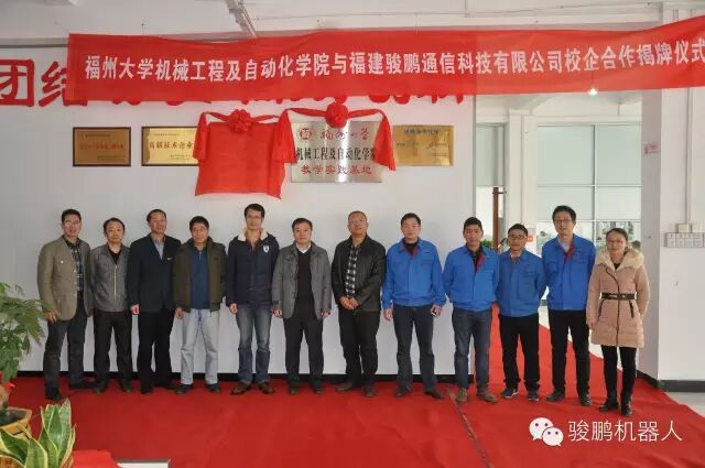 2015年12月31日,福州大学机械工程及自动化学院副院长何炳蔚教授、机电系主任聂晓根教授、吴海彬教授、何福善副教授一行赴福建骏鹏通信科技有限公司工业自动化事业部,对教学实践基地进行揭牌。